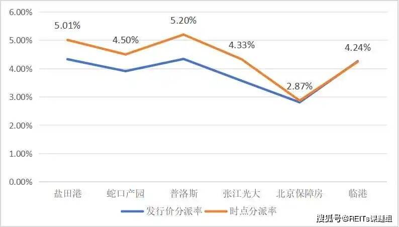 按照扩募第二年完整年度可供分配金额与时点价格计算的分派率来看,产业园领域扩募的3单REITs时点平均分派率为4.36%;仓储物流领域扩募的2单REITs时点平均分派率5.11%;1单保障房扩募项目时点分派率2.87%。